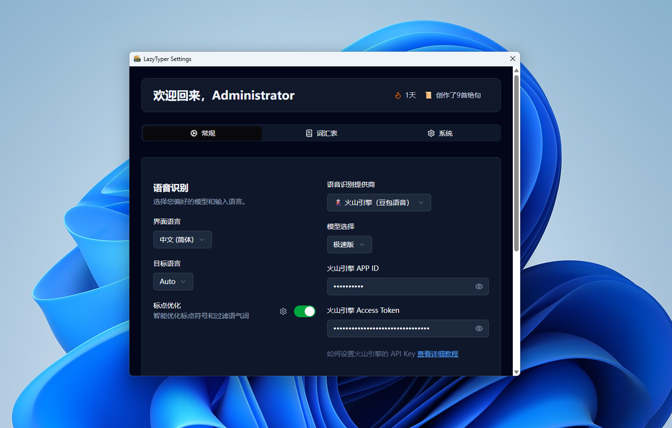 LazyTyper 最大特点在于,你需要自己接入诸如火山引擎、ElevenLabs 等第三方语音识别服务的API。